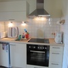 Kühlschrank, Geschirreinrichtung, Elektroherd, Tiefkühlfach, Wasserkocher, Kaffeemaschine, Toaster, Besteck, Gläser
