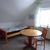 Die Wohnung im 1. OG eines 4 Familien-Ferienhauses bietet Ihnen neben einem geräumigen Wohnraum, der liebevoll und einladend ausgestattet ist, neben einer Ledergarnitur, Sat-LCD-TV, Stereoanlage, eine bestens ausgestatte Einbauküche mit Spülmaschine, E-Herd, Kühl-Gefrierkombi, Mikrowelle und vielen Elektrokleingeräten. In der gemütlichen Essecke haben auch die Kleinen ihren Platz (Kinderhochstuhl). Das Schlafzimmer mit Doppelbett und Schrank lädt zum Ruhen ein und das Kinderzimmer wird Ihren Kindern gefallen. Es hat ein Etagenbett, Tisch und Stühle, Spiele und Bücher. Das Badezimmer ist mit Dusche und WC und Waschmaschine ausgestattet.