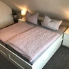 Obergeschoss: Ein Schlafzimmer mit Doppelbett.