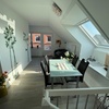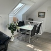 Nichtraucherhaus für 1-6 Personen über 2 Etagen mit 3 Schlafzimmern, 2 Duschbäder, 1.Tee- Küche mit Mikrowelle, 1 EBK mit Backofen u. Mikrowelle, Kaffeemaschine, Kaffeeautomat, 2 Kühlschränken, Wasserkocher, Toaster, Kinderhochstuhl, 3 Fernseher, mit DVD , 2 Esstische, Überdachte Terrasse mit Gartenmöbeln , 2 Parkplätze, Infrarot-Heizung, WLAN