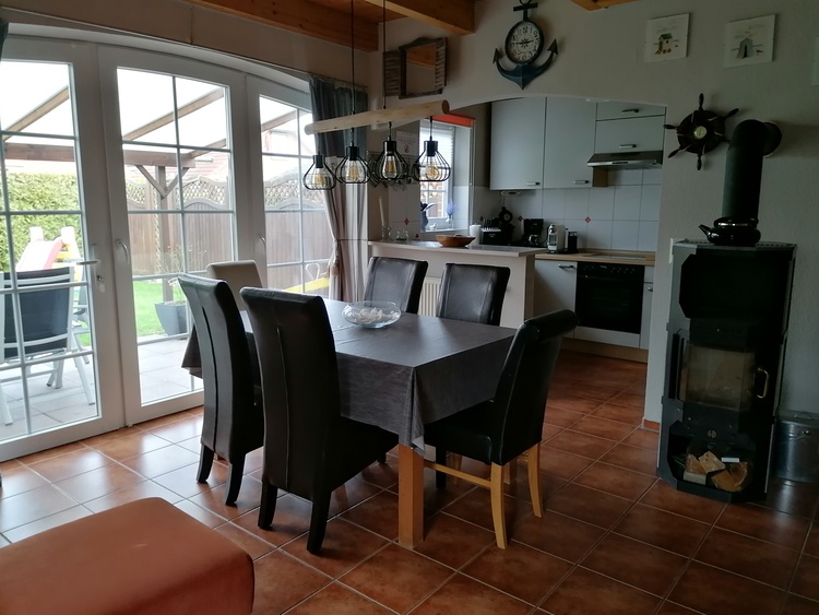Für einen gemütlichen Urlaub eingerichtetes Ferienhaus mit einer eigenen Sauna mit Farblichttherapie und einem Kaminofen für die kalten Tage.