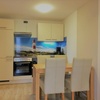 Kühlschrank, Geschirreinrichtung, Elektroherd, Tiefkühlfach, Wasserkocher, Kaffeemaschine, Toaster, Besteck, Gläser