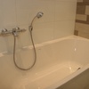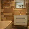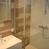 Badezimmer mit Dusche, Badewanne und Waschbecken. Separate Toilette.
