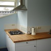 Gasherd, Kühlschrank, Geschirreinrichtung, Tiefkühlfach, Wasserkocher, Kaffeemaschine, Toaster, Besteck, Gläser