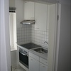 Kühlschrank, Geschirreinrichtung, Elektroherd, Tiefkühlfach, Mikrowelle, Wasserkocher, Kaffeemaschine, Toaster, Eierkocher, Besteck, Gläser