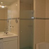 * Badezimmer mit Sechseck-Badewanne, großzügiger Dusche und Waschtrockner