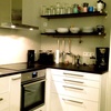 Kühlschrank, Geschirrspüler, Geschirreinrichtung, Elektroherd, Tiefkühlfach, Wasserkocher, Kaffeemaschine, Toaster, Besteck, Gläser