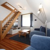 Über eine Außentreppe gelangen Sie auf die große Dachterrasse und von dort direkt in die Ferienwohnung. Diese besteht aus Küche, Wohnzimmer, zwei Schlafzimmern, Bad und WC.