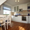 Die Küche verfügt über eine komplette Küchenzeile mit Spülmaschine, Kühlschrank mit Gefrierfach, Backofen und Herd mit Cerankochfeldern. Außerdem stehen Ihnen eine Mikrowelle, Kaffeemaschine, Wasserkocher und Toaster zur Verfügung. Und wenn Sie im Urlaub selbst kochen möchten, steht eine große Auswahl an Geschirr und Küchenutensilien für Sie bereit. Die Sitzecke mit Tischradio macht die sonnige Küche, nicht nur zu den Mahlzeiten, zu einem willkommenen Treffpunkt.