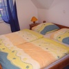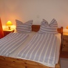 Ein Schlafzimmer mit Doppelbett. Babyreisebett steht zur Verfügung.