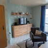 Ein geräumiger Kühlschrank mit separatem Gefrierfach und eine Filter-Kaffeemaschine sind ebenfalls vorhanden.