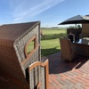 auf der Südterrasse mit Blick über die Felder von Dornum.