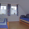 Schlafzimmer mit zwei Einzelbetten wovon eines mit einem elektrisch verstellbaren Pflegebetteinsatz ausgestattet ist.