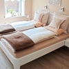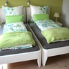 Für die Nachtruhe stehen unseren Gästen zwei Schlafzimmer zur Verfügung, eines mit einem Doppelbett und das zweite Schlafzimmer mit zwei Einzelbetten, die sich jedoch auch verbinden lassen.