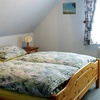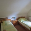 Ein Schlafraum besitzt ein Doppelbett, das andere verfügt über zwei einzelne Betten. Aus diesem Zimmer ist ein Zugang zur überdachten Loggia möglich.
