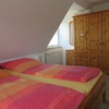 Die sepsraten Schlafzimmer im Obergeschoss mit Flur haben einmal ein zweimeter Doppelbett mit Taschenfederkernmatratzen, das andere zwei zweimeter Einzelbetten mit Schaumstoffmatratzen und ein Holzgitter Kinderbett. Die Fenster sind mit Fliegengittern ausgestattet. Ansonsten haben die Räume Kleiderschränke, Nachttische, Kommode und einen Sessel und einen Ablagetisch.