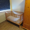 Das Obergeschoss hat zwei separate Schlafzimmer, vier Betten und ein Kleinkindbett.