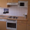 Kühlschrank, Geschirrspüler, Geschirreinrichtung, Elektroherd, Tiefkühlfach, Mikrowelle, Wasserkocher, Kaffeemaschine, Toaster, Eierkocher, Besteck, Gläser