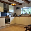 Kühlschrank, Geschirrspüler, Geschirreinrichtung, Elektroherd, Tiefkühlfach, Mikrowelle, Wasserkocher, Kaffeemaschine, Toaster, Besteck, Gläser