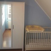 Massivholz-Kinderbett (70x140 cm) mit stabiler Wickelauflage, Hochstuhl, zwei Spielplätze in unmittelbarer Nähe