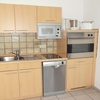 Kühlschrank, Geschirrspüler, Geschirreinrichtung, Elektroherd, Tiefkühlfach, Mikrowelle, Wasserkocher, Kaffeemaschine, Toaster, Eierkocher, Besteck, Gläser