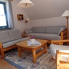 3-Zimmer-Wohnung (75 qm Wfl.) im Obergeschoss, Wohnzimmer mit bequemer Couch, Doppelsofa und Sessel, Kabel-TV, LCD-Fernseher (Flachbildschirm), KOSTENFREIES WLAN, UKW/DAB+ und Internetradio, Kaminofen, großer gemütlicher Essplatz, separate Küche (komplett ausgestattet), Cerankochfeld, Backofen, Geschirrspüler, Mikrowelle, Bad m. Dusche, separates WC, Föhn, Flur, zwei separate Schlafzimmer, großer und möblierter Balkon zur Sonnenseite, Sonnenschirm, toller Ausblick auf ein sehr schönes Naturgrundstück (Eriken, Birken und Nadelbäume) - hier finden Sie ausreichend Ruhe für ein Sonnenbad oder einfach zum Relaxen, Waschmaschine und Trockner sind im Ferienhaus zur Mitbenutzung vorhanden.