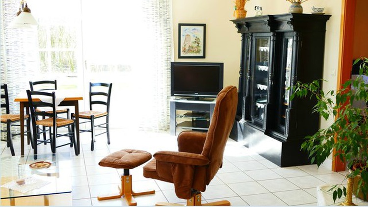 Unsere Wohnung Schimmelreiter ist mit vier Sternen ausgezeichnet. Sie befindet sich im Erdgeschoss und ist mit 115 m² unsere größte Wohnung. Sie ist behinderten- und rollstuhlgerecht. Sie eignet sich ideal für zwei Pärchen, da sie mit zwei Zimmern mit Doppelbetten und einem Badezimmer mit Badewanne und Duschbad und ein separates Gäste-WC ausgestattet ist. Eine Balkontür zum Garten zeigt viel Grünes und der Strandkorb sowie die Gartenmöbel laden ein zum Relaxen.