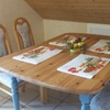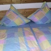 Die Fewo im OG ist für 4 Personen eingerichtet. Sie besteht aus einer speraten Küche mit Essecke, einem Wohnzimmer mit SAT-TV-Flachbildschirm, einem großen Schlafzimmer mit Doppelbett, einem kleinen Schlafzimmer mit zwei Einzelbetten und eine Dusche mit WC- in den beiden Schlafzimmer kann auf Wunsch ein Kinderbett aufgestellt werden. Ein Hochstuhl steht natürlich auch zur Verfügung.