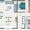 Schöner, geräumiger freistehender Bungalow mit geräumiger Wohnzimmer mit Herd und offener Küche. Der Bungalow hat eine Veranda.