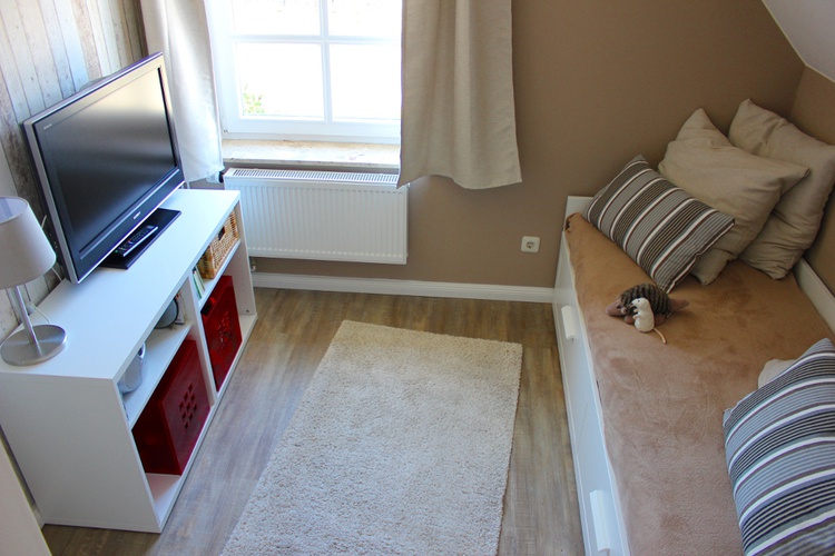 Im 1. Stock befindet sich das Elternschlafzimmer mit einem Doppelbett (180cm) und ausreichend Schrankfläche. Bei Bedarf kann hier das vorhandene Babybett aufgestellt werden. Das kleine Tageslichtbad mit Dusche bietet einen Handtuchheizkörper, Fön, WC und einen modernen Waschtisch. Im Kinderzimmer befindet sich ein Tagesbett für gemütliche Stunden, das bei Bedarf in ein Doppelbett (160cm) umgewandelt werden kann. Hier finden Kinder jeden Alters Zerstreuung bei Lego, Playmobil etc. oder ausnahmsweise auch mal vor dem Fernseher. Im separaten Schlafbereich stehen 2 Einzelbetten (90cm). Hier können die Kinder mal ganz unter sich sein, oder Sie nutzen das Zimmer als Rückzugsort, wenn Sie einmal Ruhe suchen.